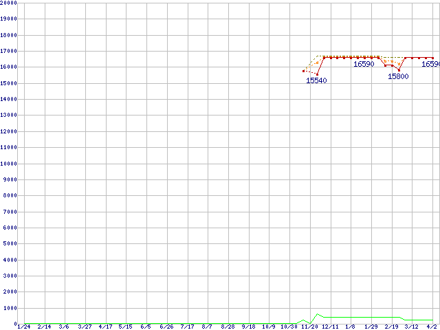 ※このグラフは過去のデータも税率5%相当に調整した税込み相当額のグラフです。 税率変更や、総額表示方式導入(2004年4月)の影響は除いています。 | | | ●凡例 | 最安値 (点線部は販売店未確認 または未調査) | 平均値 | 最高値 | ショップ数 |