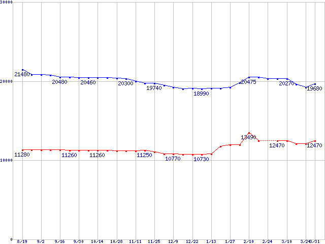(10000rpm,Serial ATA/150,8MB)の最安値推移
