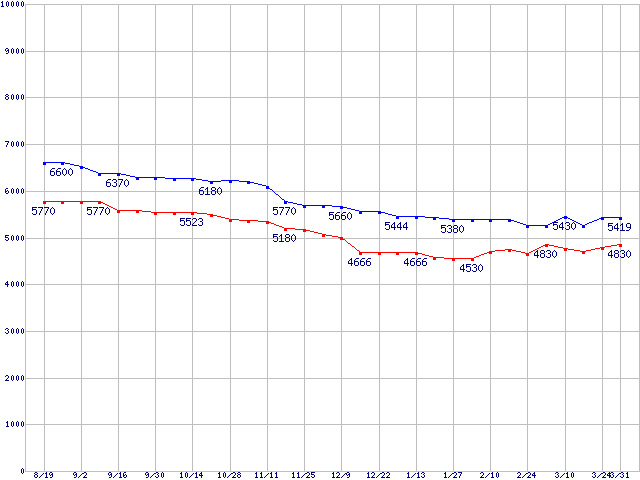 Deskstar 7K250 (7200rpm,Ultra ATA/100)の最安値推移