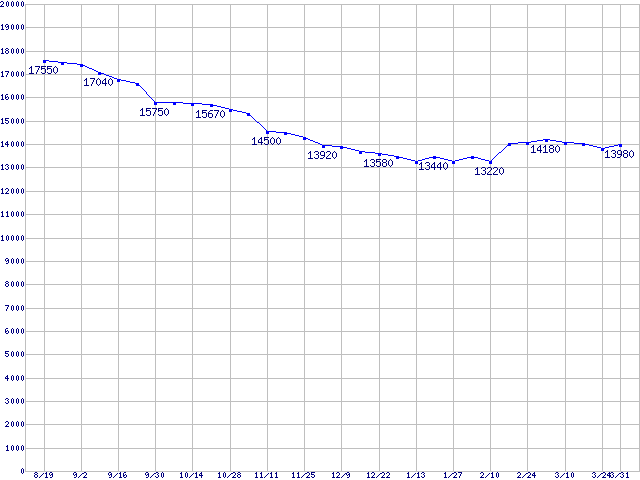 (7200rpm,8MB,Ultra ATA/133)の最安値推移
