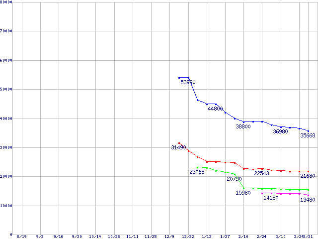 DiamondMax 16 (5400rpm,Ultra ATA/133,2MB,80GB/Platter)の最安値推移