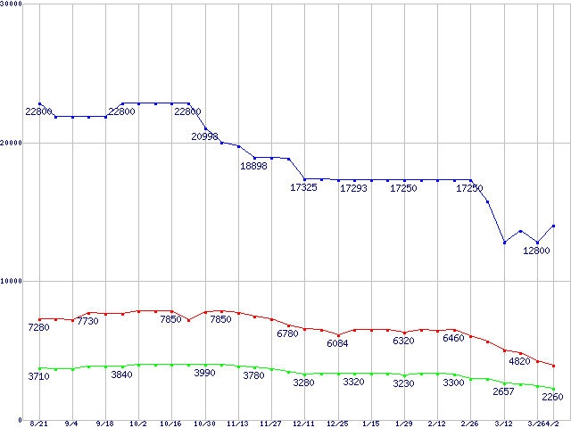 PC2700(DDR333) DDR SDRAM DIMMの最安値推移