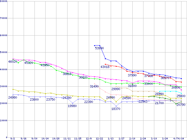 HDD主要製品の最安値推移