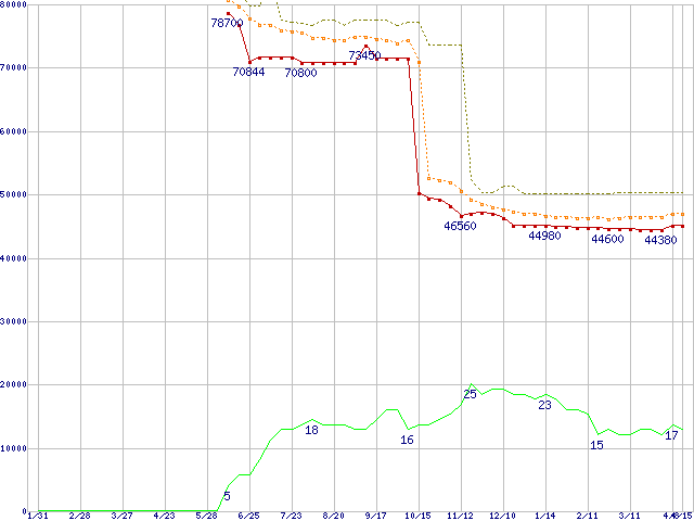 | Pentium M 755 (2GHz) リテールパッケージの価格推移 | | | (2004年1月31日~2005年4月15日) |
