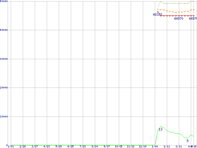 | Pentium 4 3.60GHz (EM64T対応) リテールパッケージの価格推移 | | | (2004年1月31日~2005年4月15日) |
