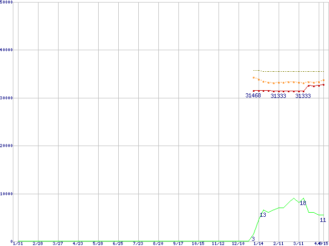 | Pentium M 750 (1.86GHz) リテールパッケージの価格推移 | | | (2004年1月31日~2005年4月15日) |