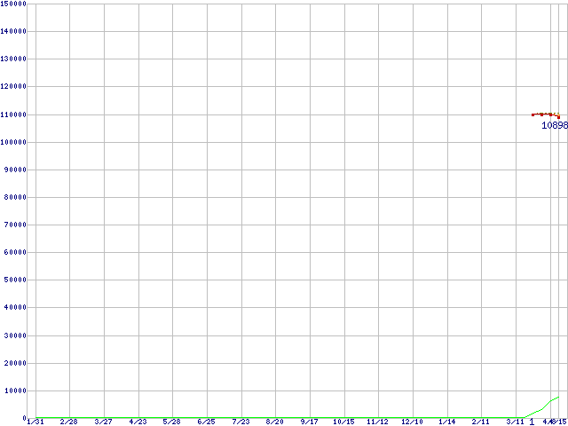 ※このグラフは過去のデータも税率5%相当に調整した税込み相当額のグラフです。 税率変更や、総額表示方式導入(2004年4月)の影響は除いています。 | | | ●凡例 | 最安値 (点線部は販売店未確認 または未調査) | 平均値 | 最高値 | ショップ数 |
