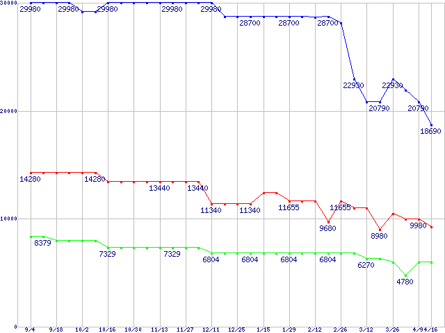 PC2700(DDR333) DDR SDRAM DIMMの最安値推移