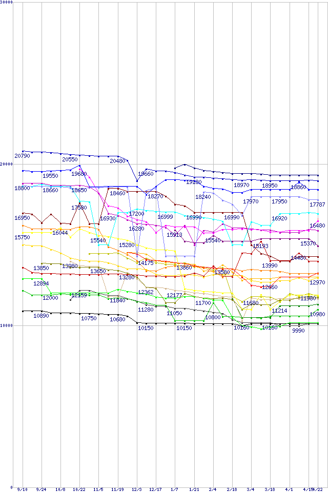 ※製品名をクリックすると個別のグラフを表示します ※点線部は販売店が確認できなかった、または調査データがないことを示します |