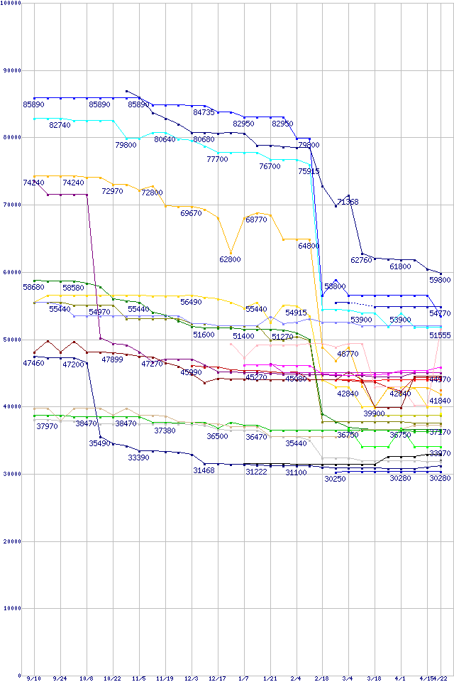 ※製品名をクリックすると個別のグラフを表示します ※点線部は販売店が確認できなかった、または調査データがないことを示します |