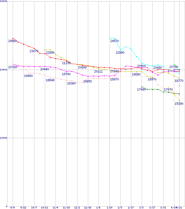 HDD主要製品(最安値1万5千円~2万円未満)の最安値推移