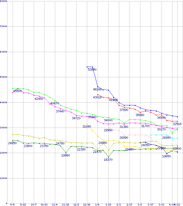 HDD主要製品の最安値推移