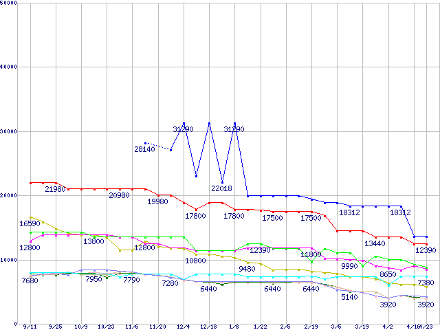 ※点線部は販売店が確認できなかった、または調査データがないことを示します