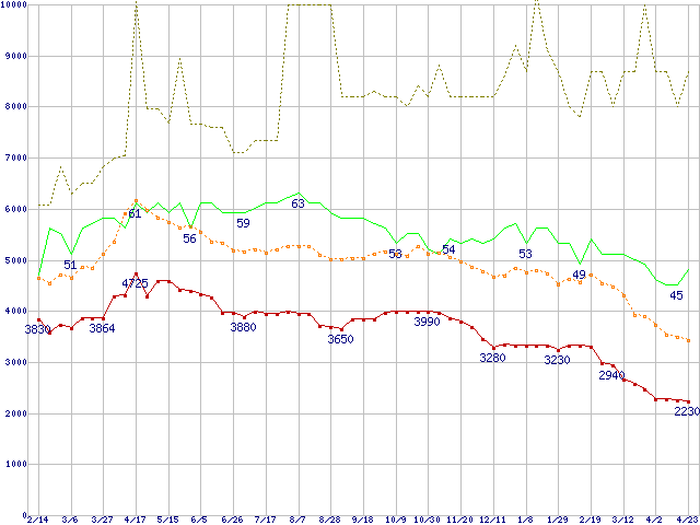 PC2700(DDR333) DDR SDRAM DIMMの最安値推移