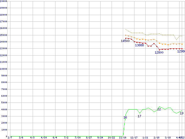| Celeron D 345 (3.06GHz) リテールパッケージの価格推移 | | | (2004年2月7日~2005年4月22日) |