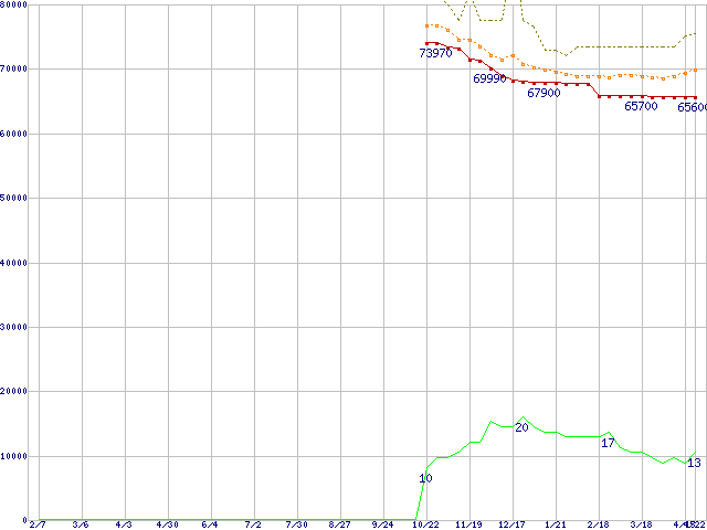 | Pentium M 765 (2.10GHz) リテールパッケージの価格推移 | | | (2004年2月7日~2005年4月22日) |