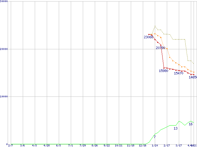 | Barracuda 7200.8 ST3250823AS (250GB)の価格推移 | | | (2004年2月7日~2005年4月21日) |
