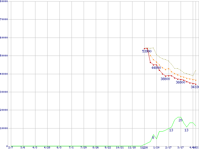 | Barracuda 7200.8 ST3400832AS (400GB)の価格推移 | | | (2004年2月7日~2005年4月21日) |