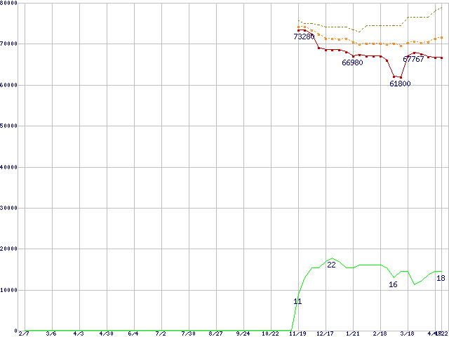 | Pentium 4 570J (3.80GHz) リテールパッケージの価格推移 | | | (2004年2月7日~2005年4月22日) |