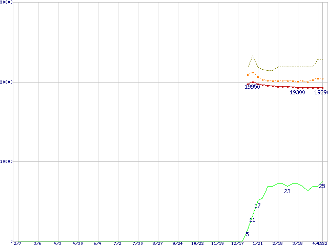 | Pentium 4 530J (3GHz) リテールパッケージの価格推移 | | | (2004年2月7日~2005年4月22日) |