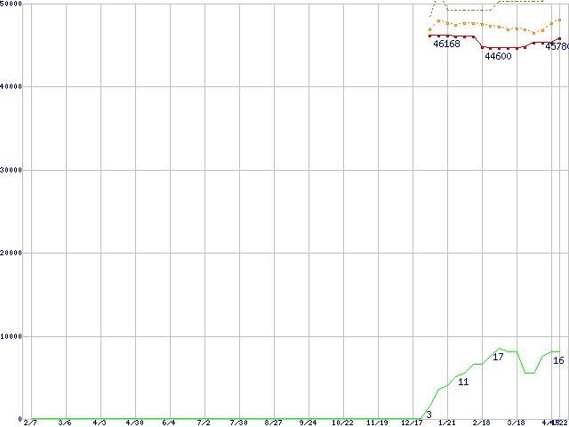 | Pentium M 760 (2GHz) リテールパッケージの価格推移 | | | (2004年2月7日~2005年4月22日) |