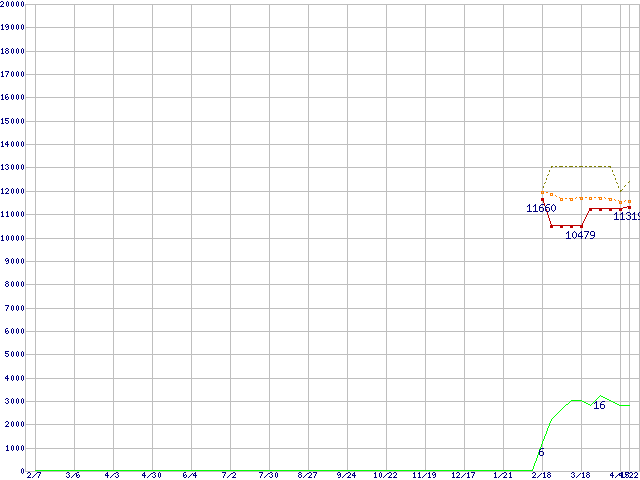 | Sempron 3000+(1.8GHz,L2 128KB,Socket 754) リテールパッケージの価格推移 | | | (2004年2月7日~2005年4月22日) |