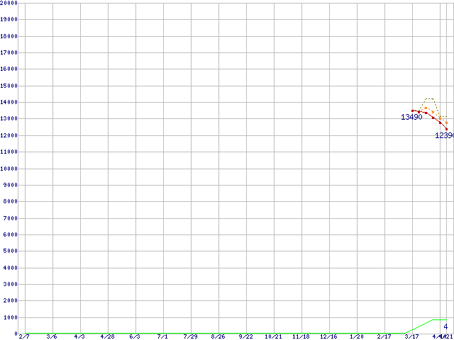 ※このグラフは過去のデータも税率5%相当に調整した税込み相当額のグラフです。 税率変更や、総額表示方式導入(2004年4月)の影響は除いています。 | | | ●凡例 | 最安値 (点線部は販売店未確認 または未調査) | 平均値 | 最高値 | ショップ数 |