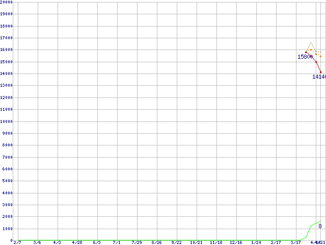| Deskstar T7K250 HDT722525DLAT80 (250GB,8MB)の価格推移 | | | (2004年2月7日~2005年4月21日) |