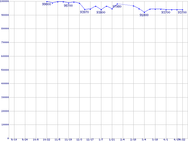 mPGA479M (Micro-FCPGA ,FSB 400MHz,L2 1MB,Dothan)の最安値推移