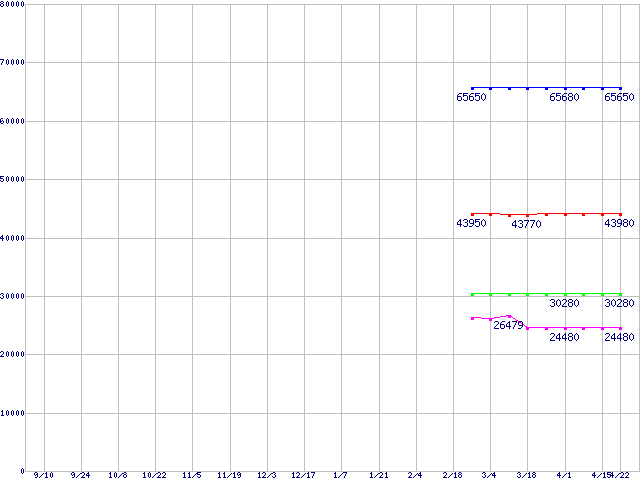 | LGA 775 (FC-LGA4 ,FSB 800MHz,L2 2MB,Hyper-Threading,Prescott,EM64T・EIST・NX bit対応)の最安値推移 | | | (2004年9月10日~2005年4月22日) |