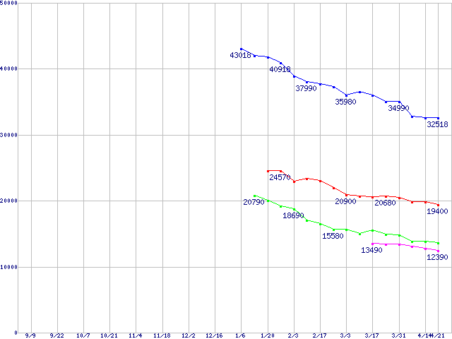 | Barracuda 7200.8 (7200rpm,Ultra ATA/100,133GB/Platter)の最安値推移 | | | (2004年9月9日~2005年4月21日) |