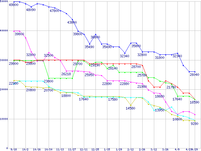 メモリ主要製品の最安値推移