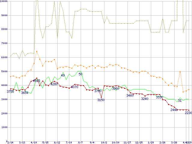 PC2100(DDR266) DDR SDRAM DIMM(CL 2.5)の最安値推移