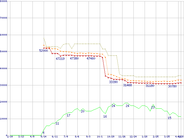 | Pentium M 745 (1.80GHz) リテールパッケージの価格推移 | | | (2004年2月14日~2005年4月28日) |