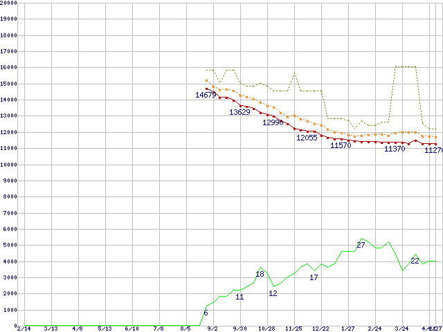 | DiamondMax 10 6B200M0 (200GB,8MB)の価格推移 | | | (2004年2月14日~2005年4月27日) |
