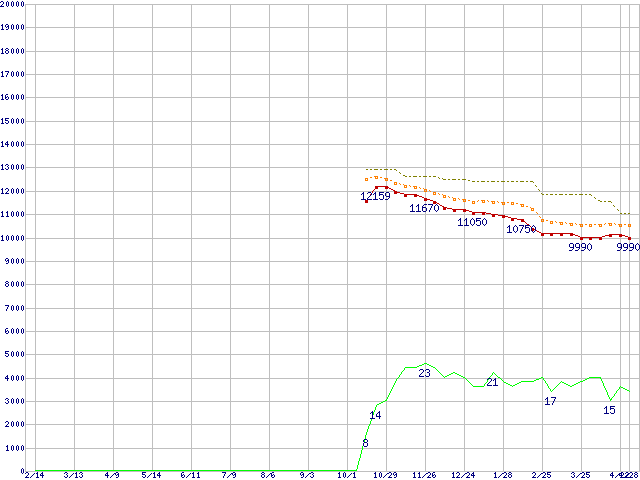 | Celeron D 335J (2.80GHz) リテールパッケージの価格推移 | | | (2004年2月14日~2005年4月28日) |