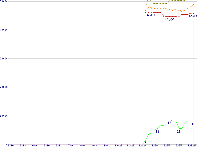 | Pentium M 760 (2GHz) リテールパッケージの価格推移 | | | (2004年2月14日~2005年4月28日) |