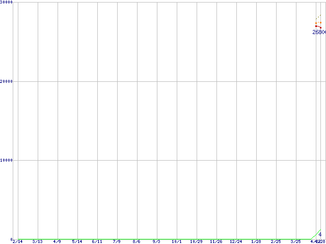 | Turion 64 MT-32 (1.8GHz,512KB) バルクの価格推移 | | | (2004年2月14日~2005年4月28日) |