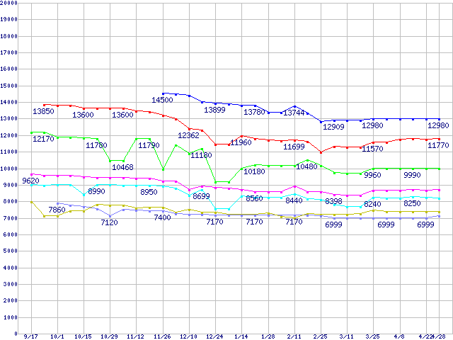 Socket 478 (FC-PGA2,FSB 400MHz,L2 128KB,Northwood)の最安値推移