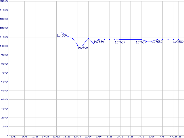 | LGA 775 (FC-LGA4,FSB 1066MHz,L2 512KB,L3 2MB,Hyper-Threading,Gallatin)の最安値推移 | | | (2004年9月17日~2005年4月28日) |