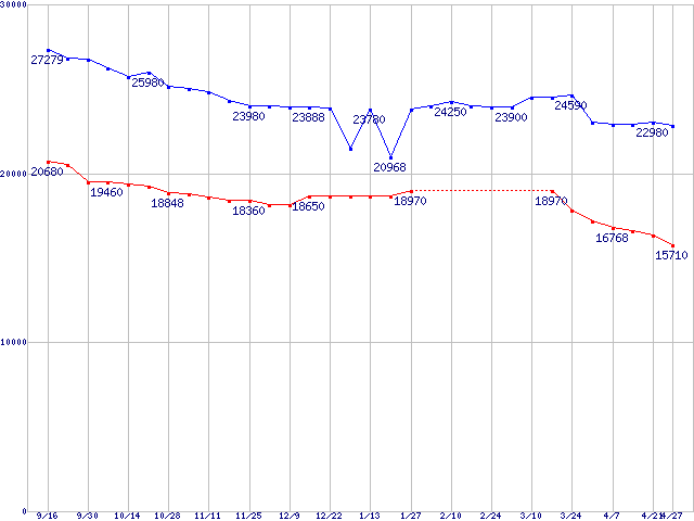 (7200rpm,16MB,Serial ATA II)の最安値推移