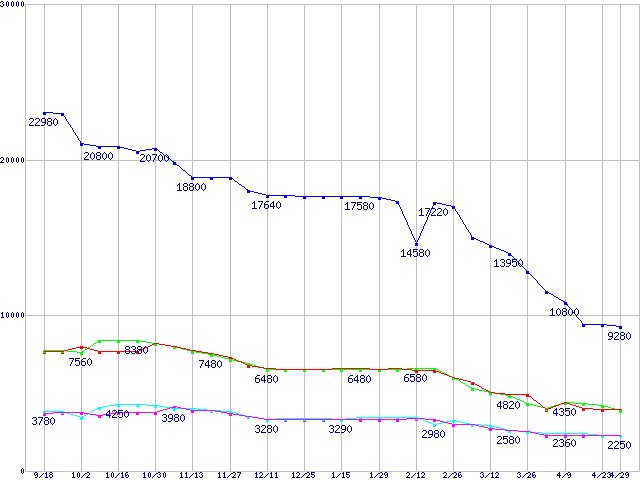 PC3200(DDR400) DDR SDRAM DIMMの最安値推移