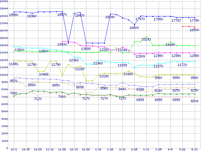 ※点線部は販売店が確認できなかった、または調査データがないことを示します