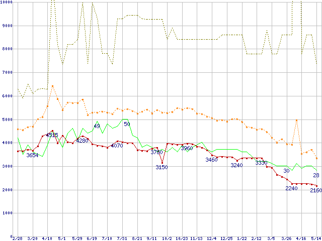 PC2100(DDR266) DDR SDRAM DIMM(CL 2.5)の最安値推移