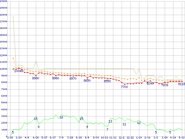 | WD Caviar WD1600BB (160GB)の価格推移 | | | (2004年2月28日~2005年5月12日) |