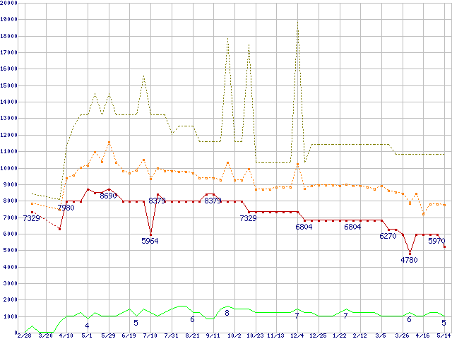 メモリ主要製品(最安値5千円~1万円未満)の最安値推移