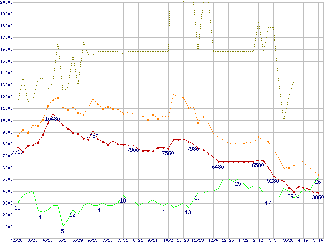 PC3200(DDR400) DDR SDRAM DIMMの最安値推移