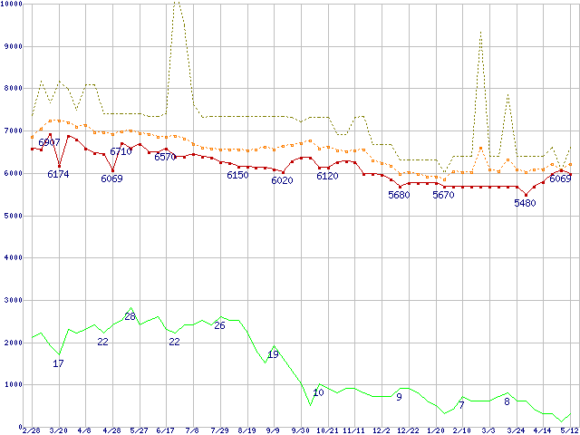 | Deskstar 7K250 HDS722580VLAT20 (80GB,2MB)の価格推移 | | | (2004年2月28日~2005年5月12日) |