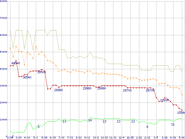 PC3200(DDR400) DDR SDRAM DIMM ECC対応 Registeredタイプの最安値推移