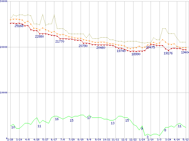 | WD Raptor WD740GD (74.3GB)の価格推移 | | | (2004年2月28日~2005年5月12日) |